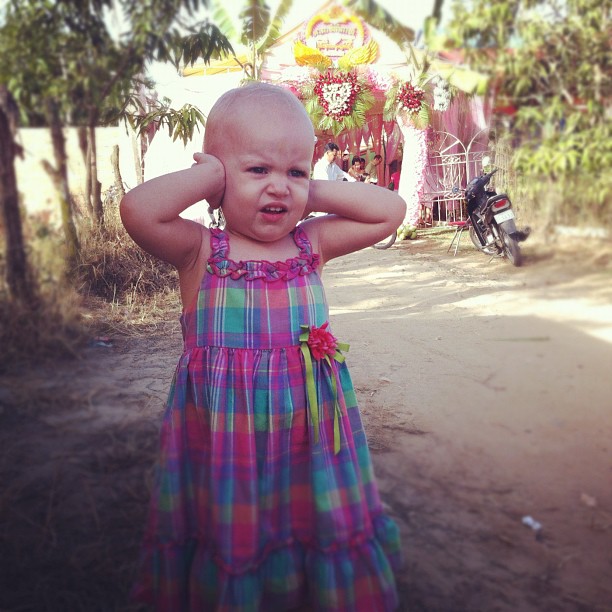 Music is rather loud at a Cambodian wedding, so you might find your daughter looking like this: