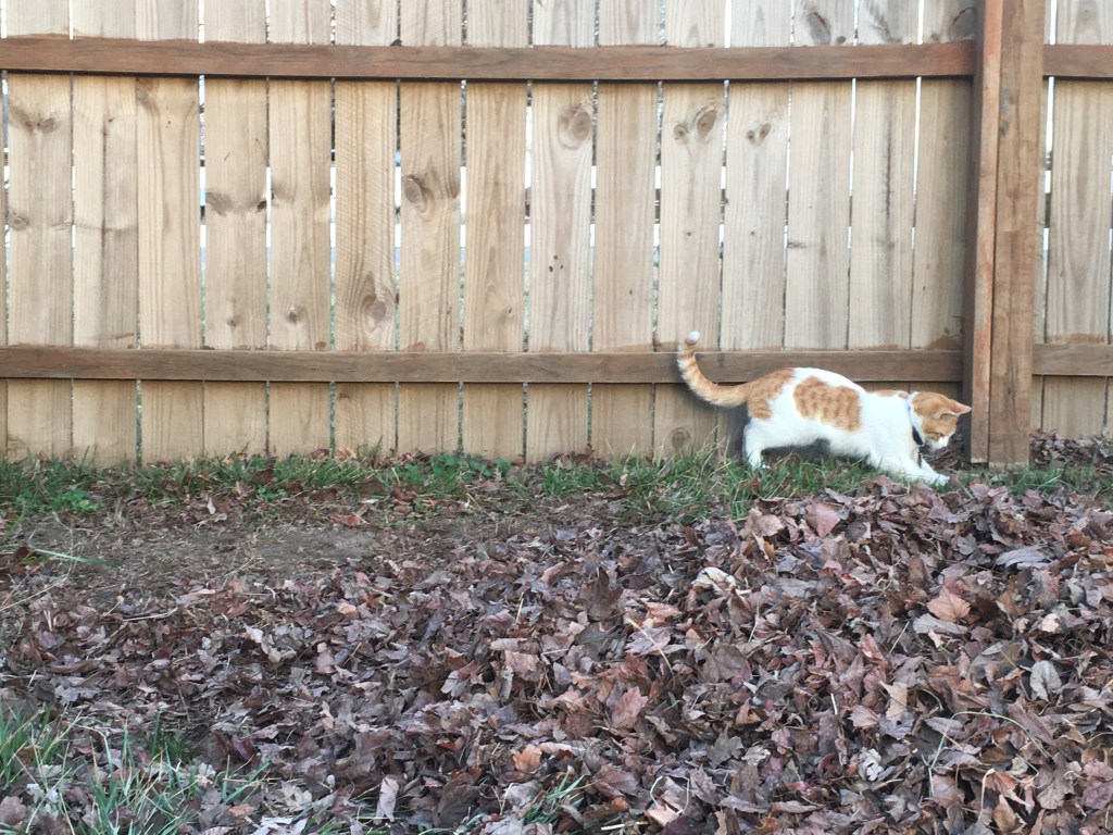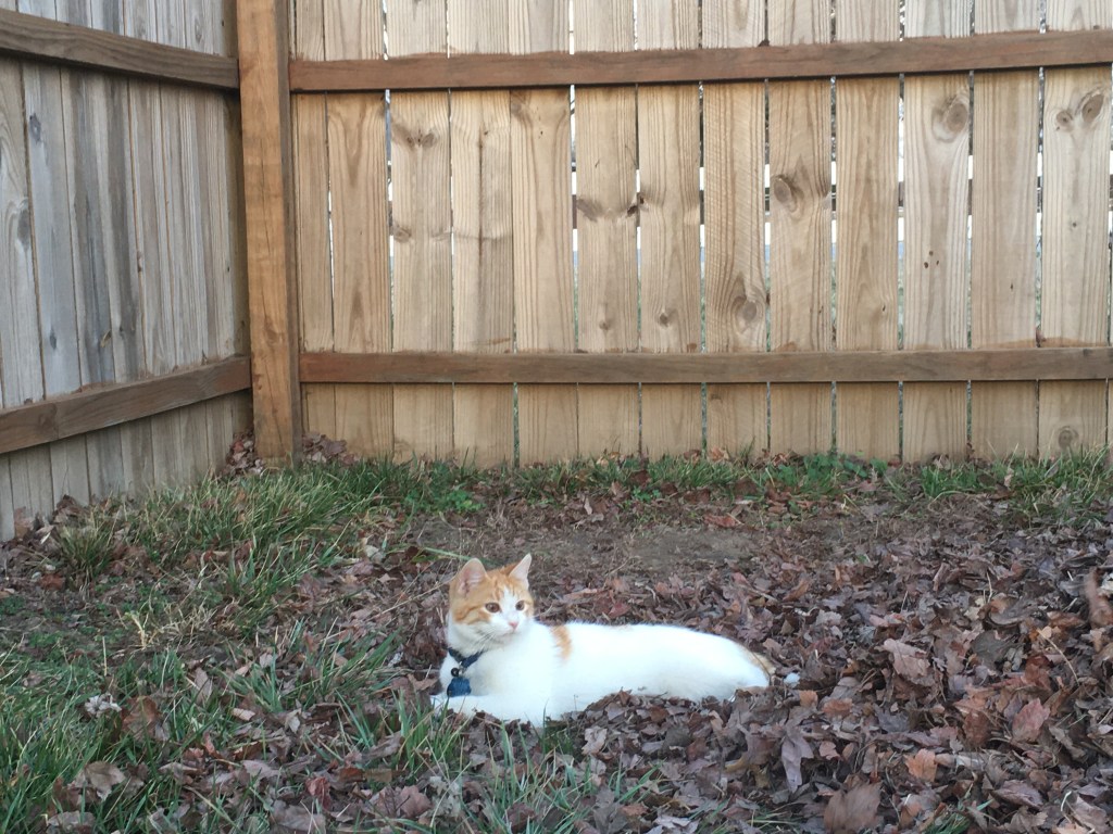 We went looking for him and found him in a neighbor’s yard. He’d jumped the fence into their yard but couldn’t figure out how to get back in to ours. Another time he disappeared for two days. After the first day, we got worried. I walked the neighborhood, talking to strangers and asking about our cat. No one had seen any sign of our cat. I walked the streets so long I got a sunburn.