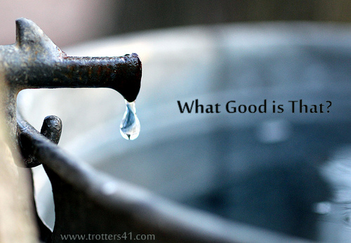 And then I turn around and faithlessly say, “but what good is that, with 7 billion people on this planet?” It’s nothing, not good for anything. You’ll never do anything important or valuable with that, I tell Him.