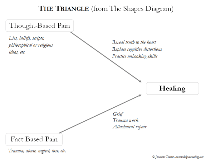 Let’s talk about the difference between lie-based pain and fact-based pain (the stuff in the triangle), and why the distinction matters.